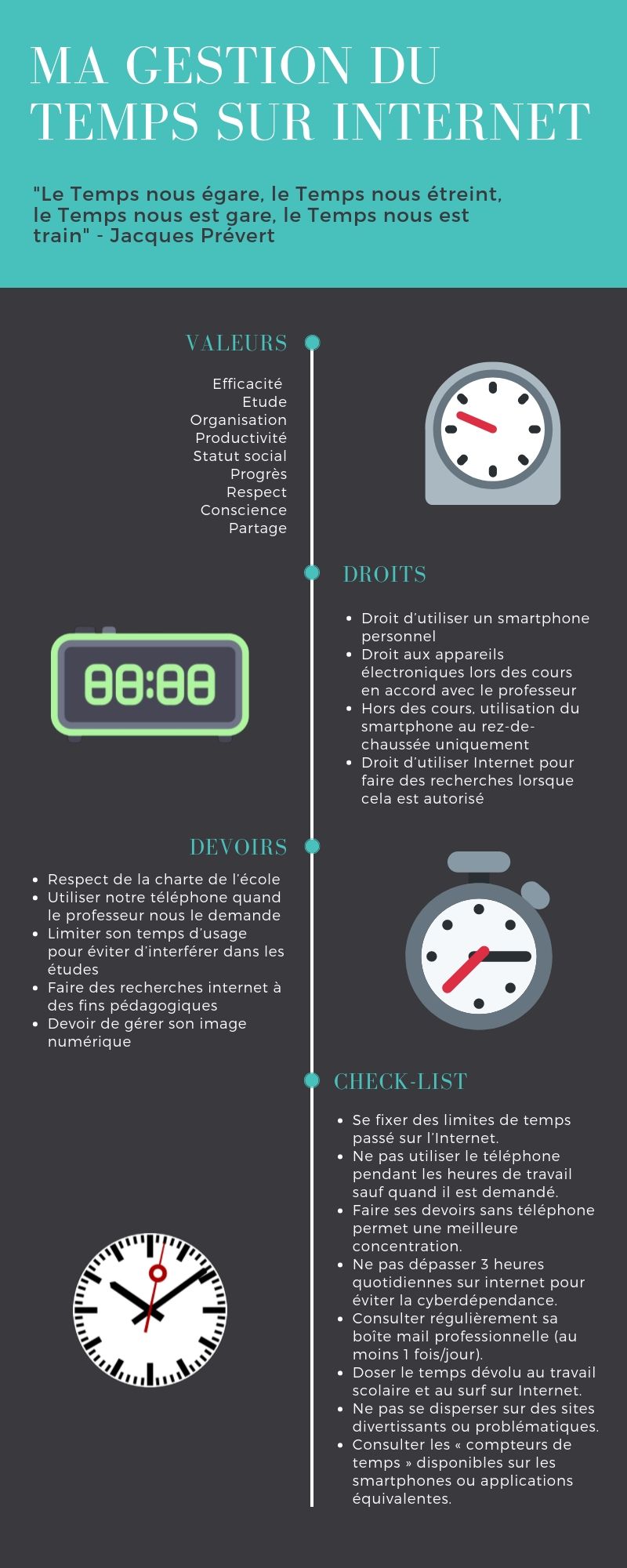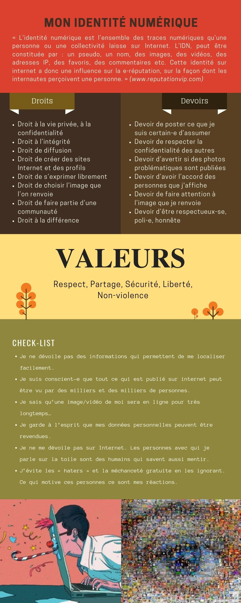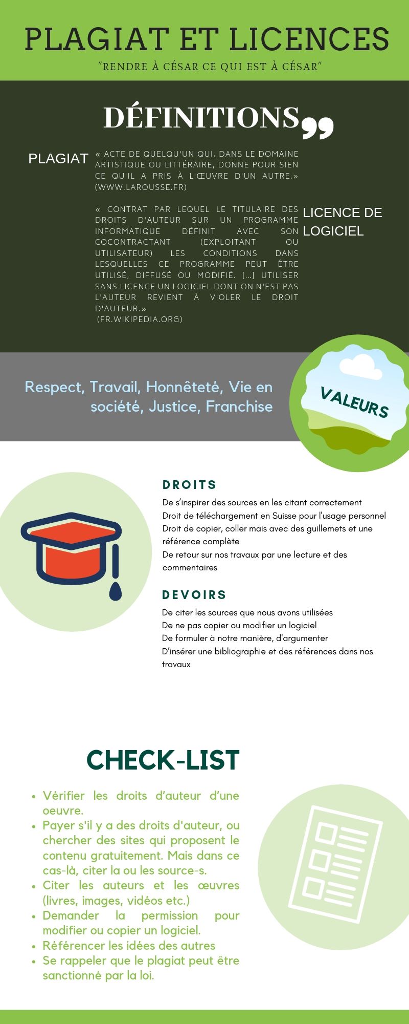 Par les élèves et pour les élèves! Les 6 flyers ci-dessous ont été pensés et rédigés par des classes d'éthique afin de permettre à tout un chacun de connaître ses droits et devoirs en matière de numérique à l'école. En accord avec le règlement de l'ECCG et la charte informatique de l'école (cliquez ici pour lire la version complète), ces petits guides sont regroupés par thèmes et fonctionnent comme ressources en cas de questionnement ou de difficulté. A consulter sans modération : Un clic sur l'image et le sésame s'ouvre de manière lisible :-)